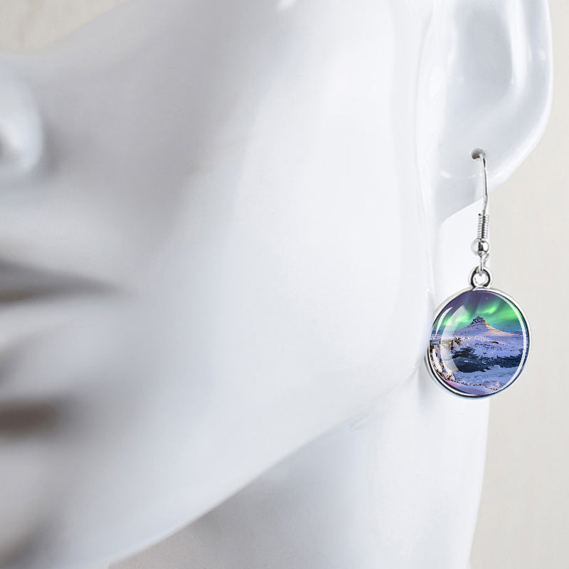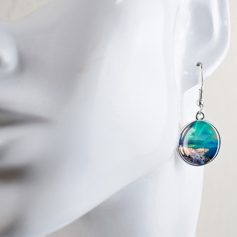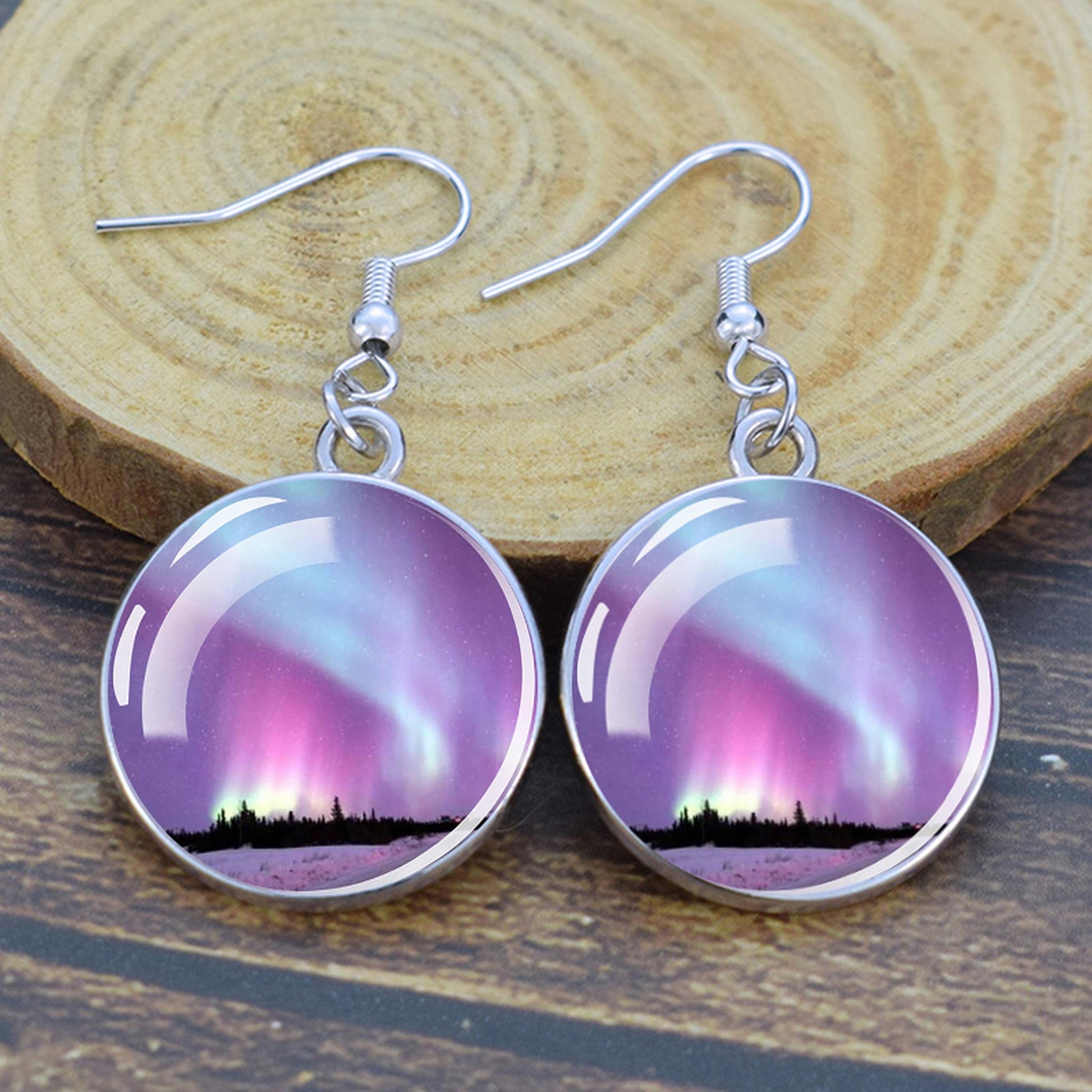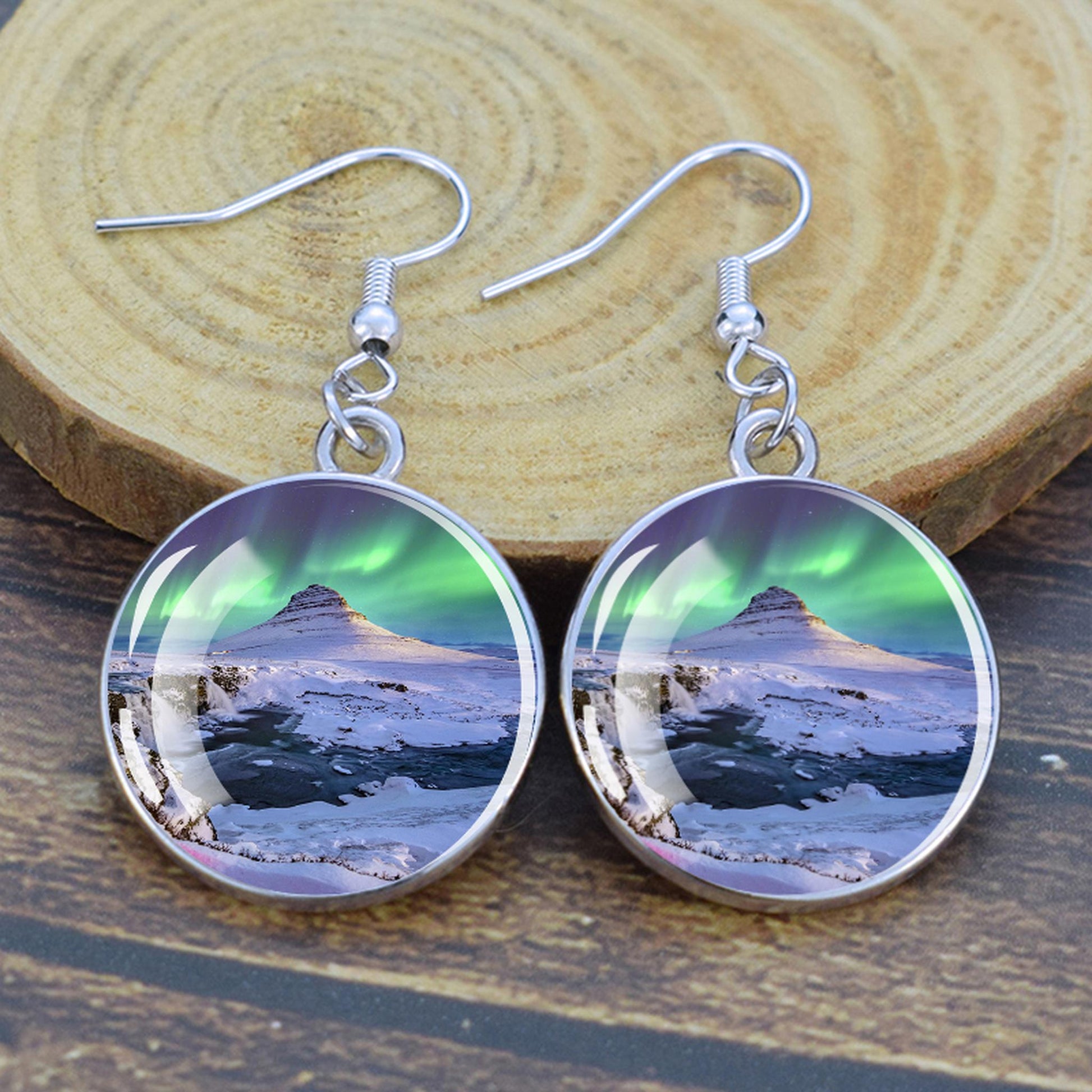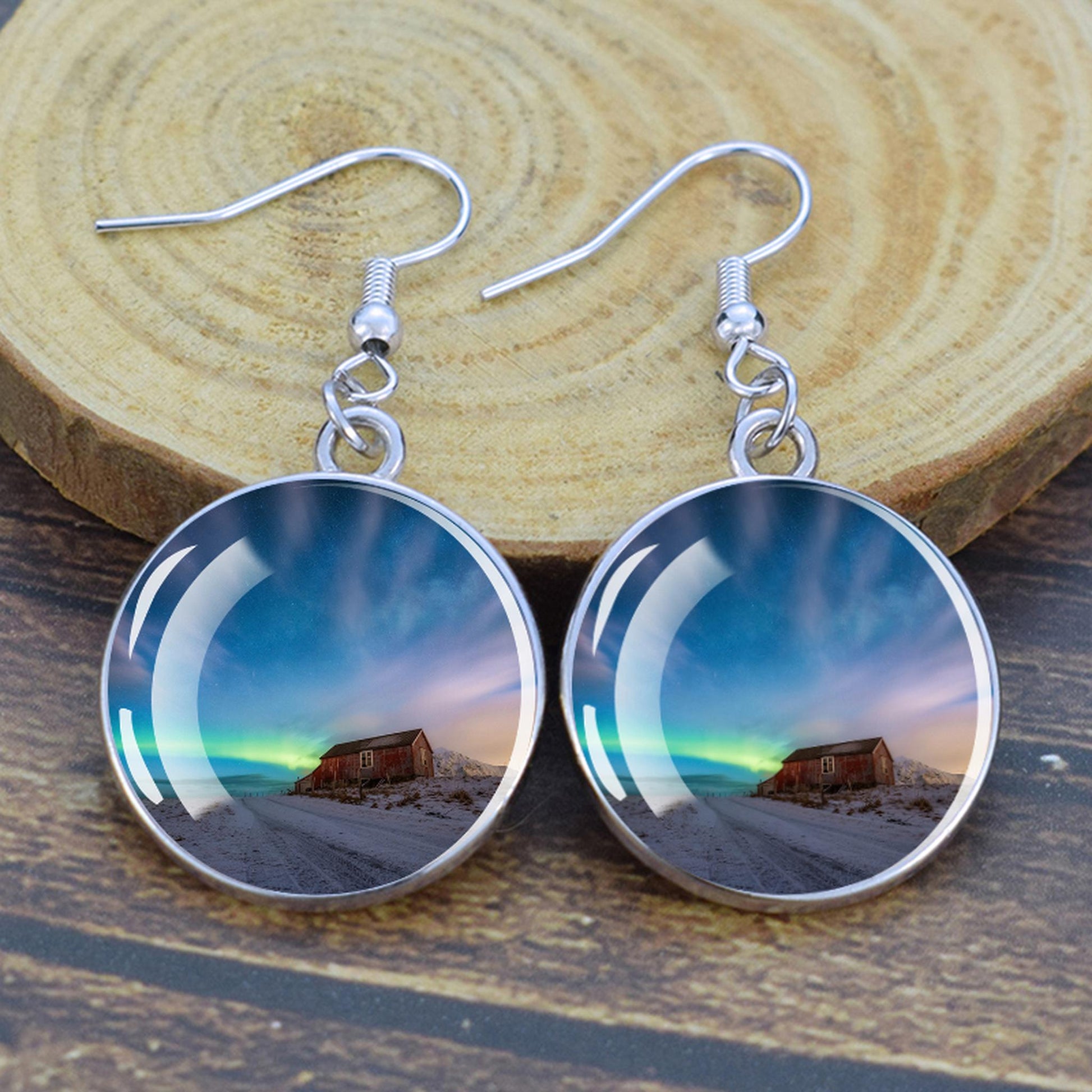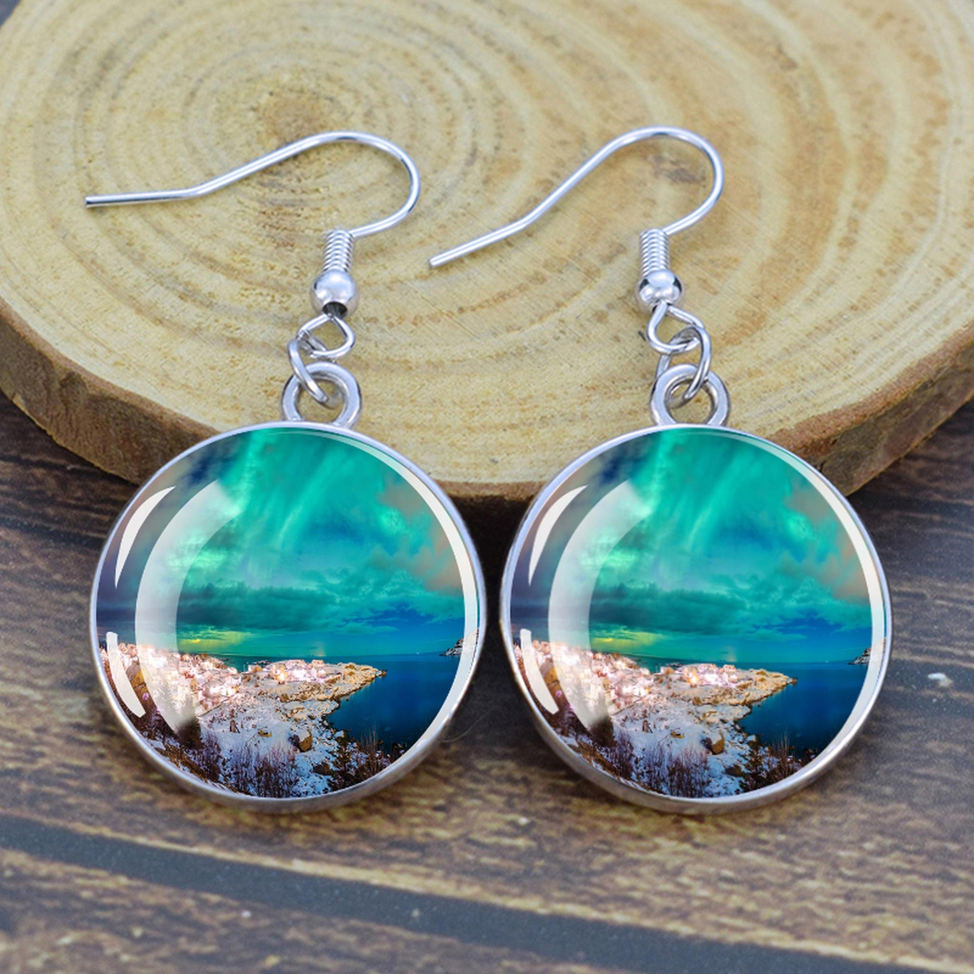 Diseñados para mujeres y niñas que aprecian el encanto de las maravillas de la naturaleza, estos aretes colgantes son una fusión de elegancia y mística. El delicado cabujón de cristal, con un generoso diámetro de 2,0 cm, actúa como lienzo para los encantadores tonos de la Aurora borreal. Sumérgete en el mágico juego de verdes, morados y azules, que recuerdan al propio espectáculo celestial.