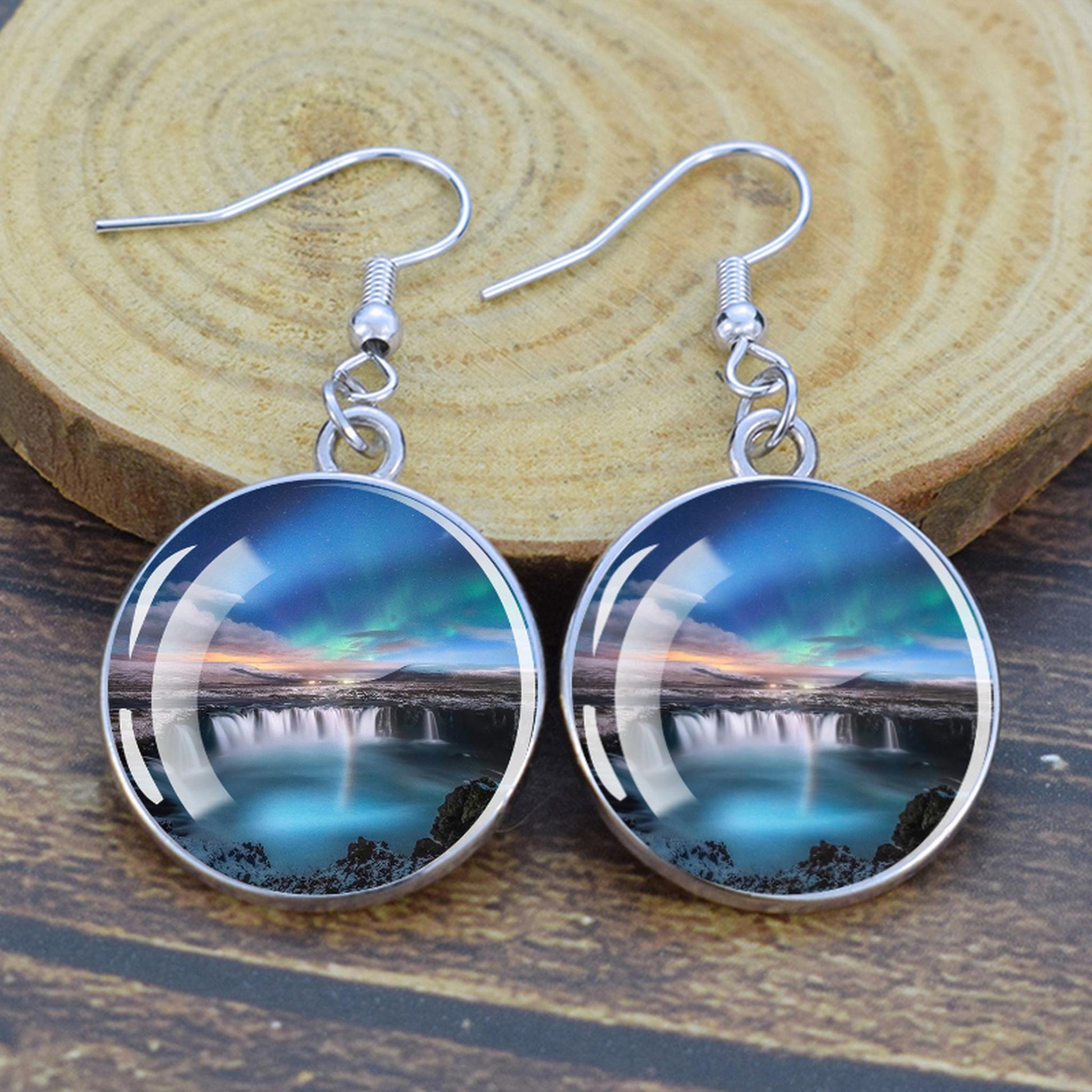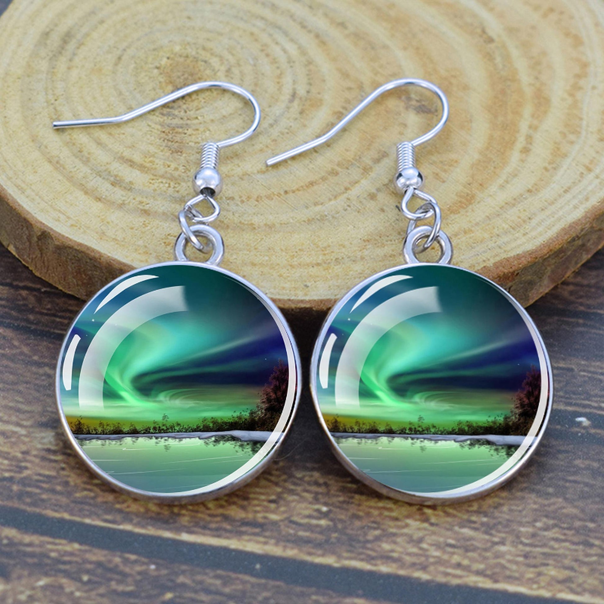 Helendavad Aurora Borealis Drop Kõrvarõngad - Virmaliste ehted - Unikaalsed klaasist Cabochoni rippuvad kõrvarõngad - Ideaalne kingitus Aurora armastajatele