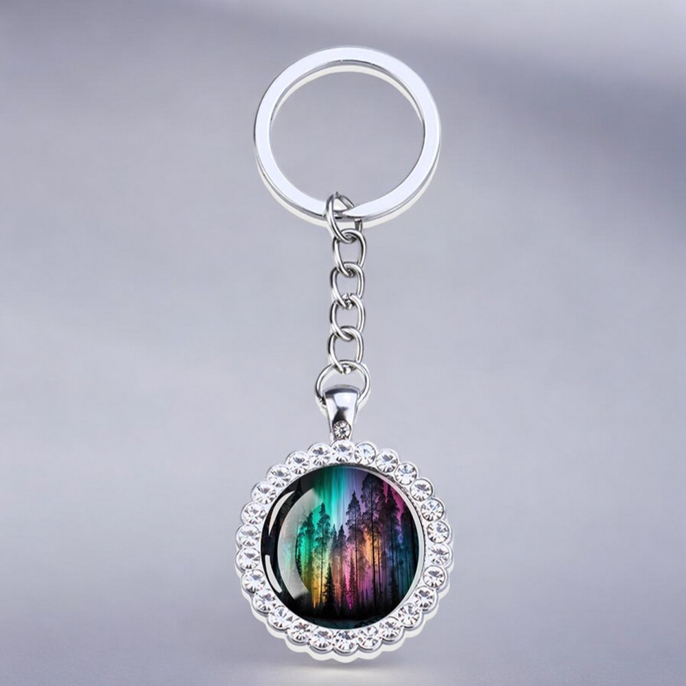 Luminous Aurora Borealis Silver Keyring - Northern Light Jewelry - Rhinestones Glass Key Chain - Perfect Aurora Lovers Gift
