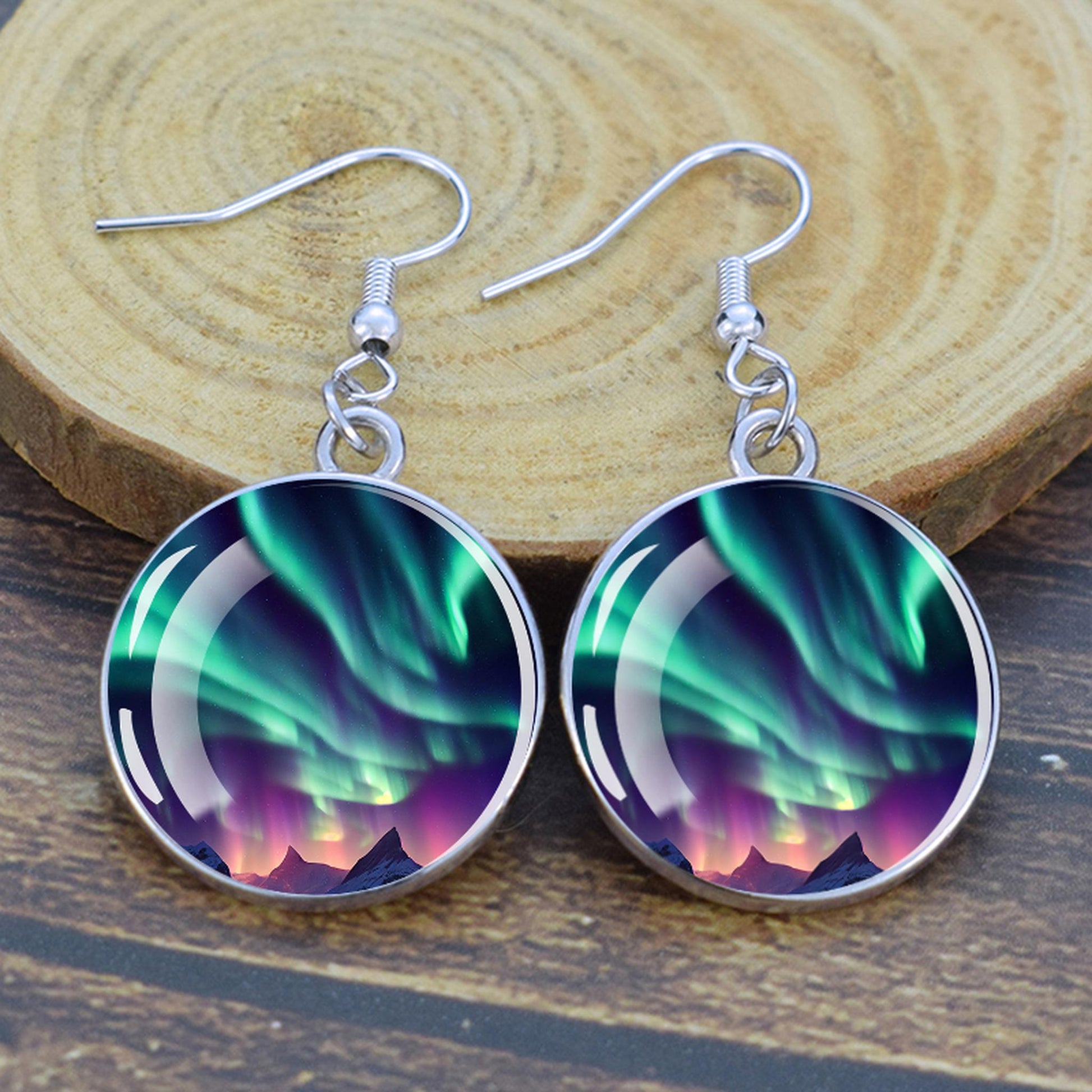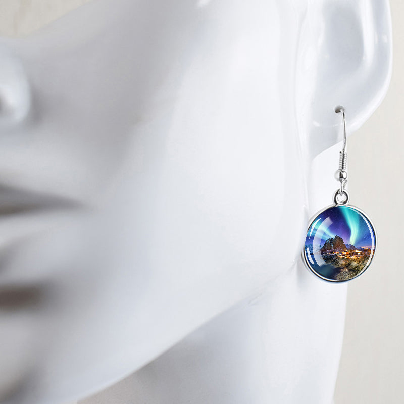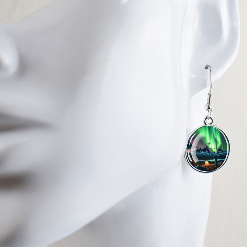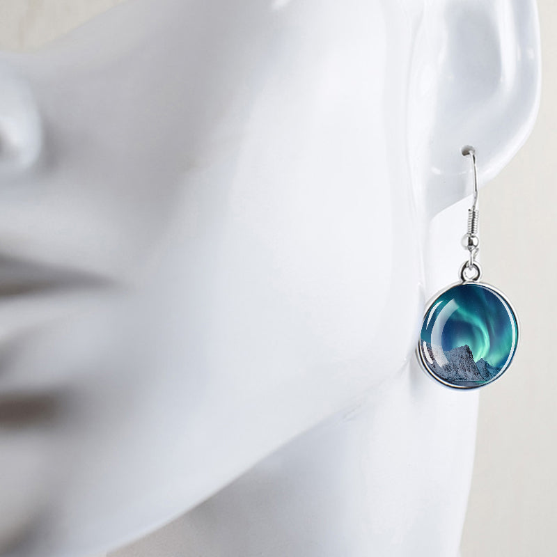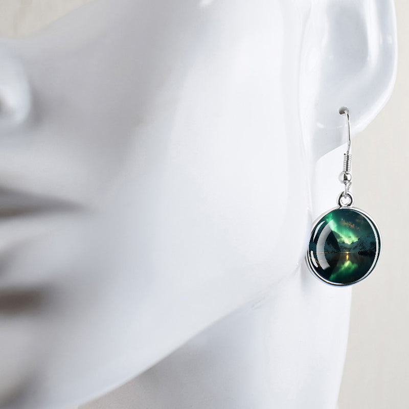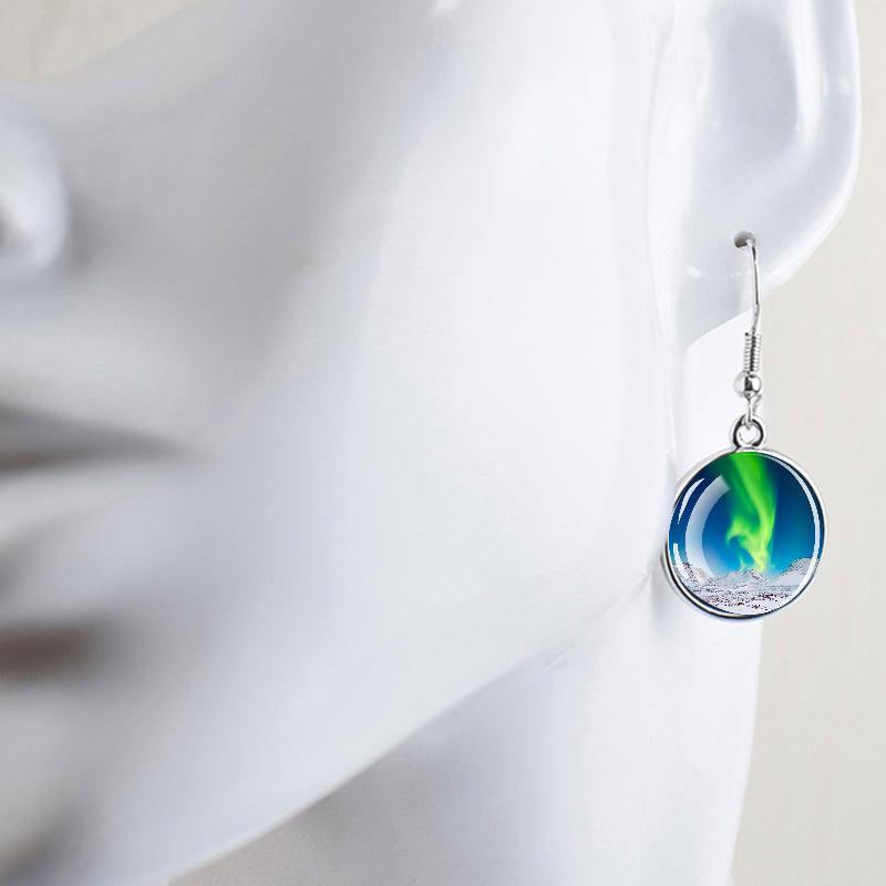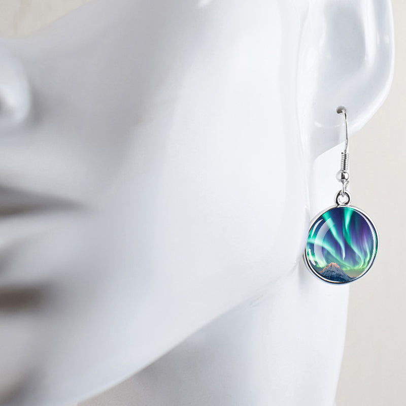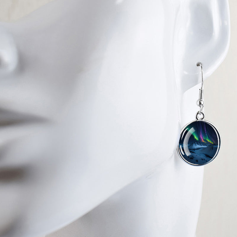 Conçues pour les femmes et les filles qui apprécient le charme des merveilles de la nature, ces boucles d'oreilles pendantes sont une fusion d'élégance et de mystique. Le délicat cabochon en verre, d'un diamètre généreux de 2,0 cm, sert de toile aux teintes enchanteresses des aurores boréales. Plongez-vous dans le jeu magique des verts, des violets et des bleus, rappelant le spectacle céleste lui-même.