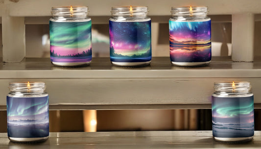 Aurora Borealis Scented Candle | 8oz Candle Jar | Lotus & Green Tea & Lavender Scents | Northern Light Souvenir | Night Sky Charm | Amazing Soft Scents | Perfect Aurora Lovers Gift