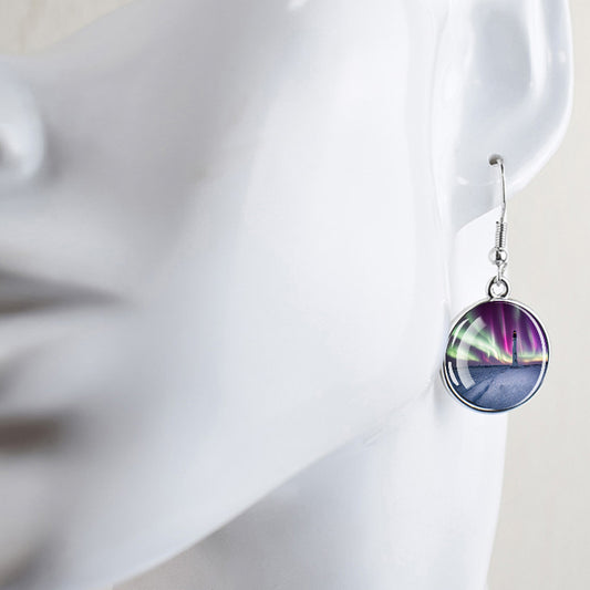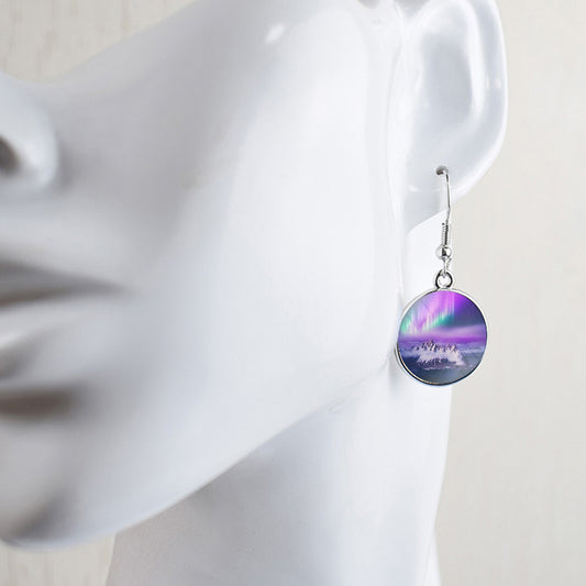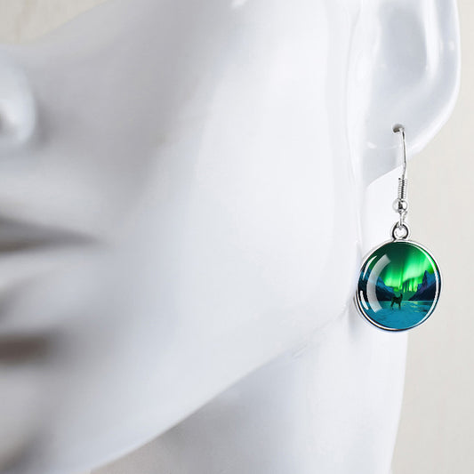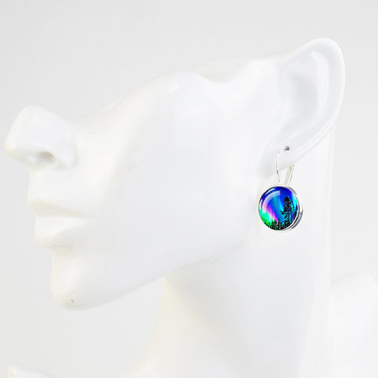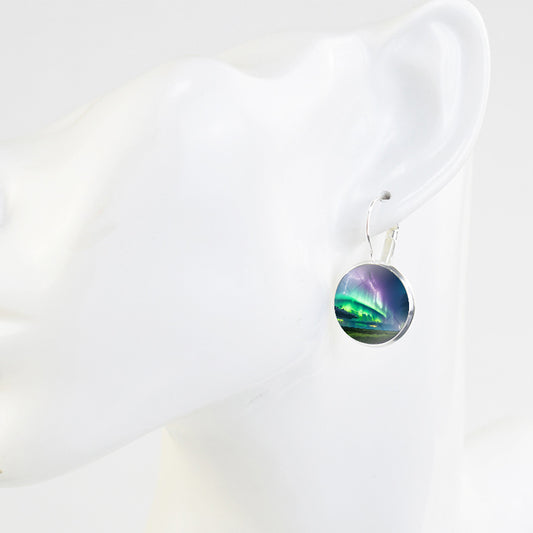 Luminous Aurora Borealis Hook Earrings - Northern Lights Jewelry - Unique Glass Cabochon Drop Earrings - Perfect Aurora Lovers Gift