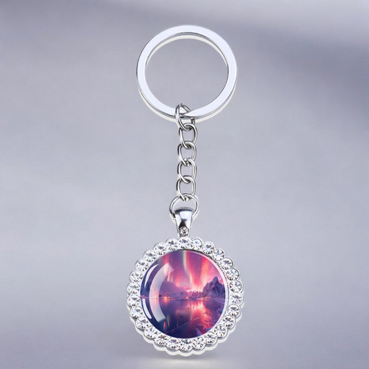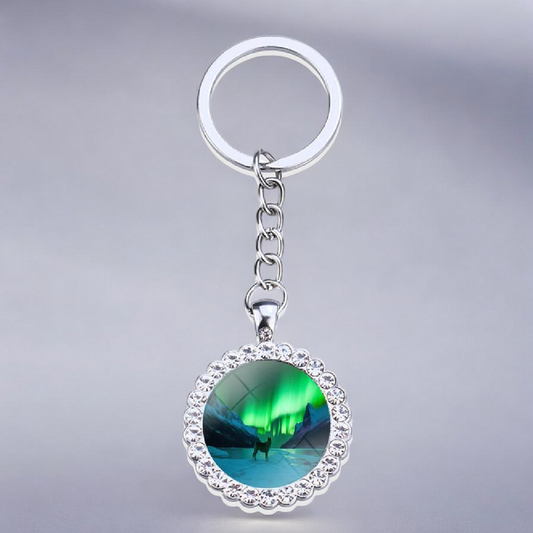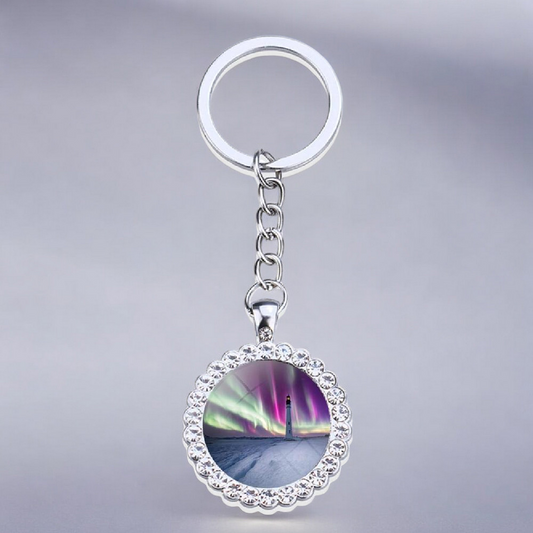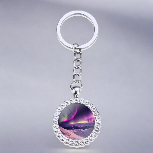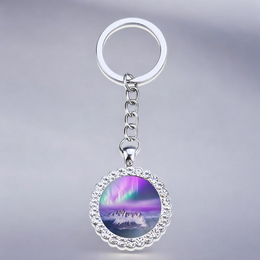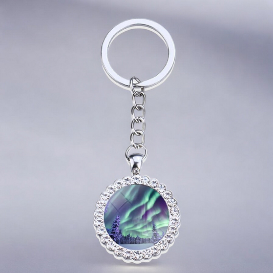 Luminous Aurora Borealis Silver Keyring - Northern Light Jewelry - Rhinestones Glass Key Chain - Perfect Aurora Lovers Gift