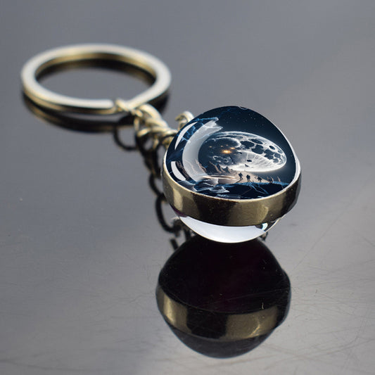 Luminous Full Crescent Moon Keyring - Night Starry Sky Jewelry - Double Side Glass Ball Key Chain - Perfect Moon Lovers Gift