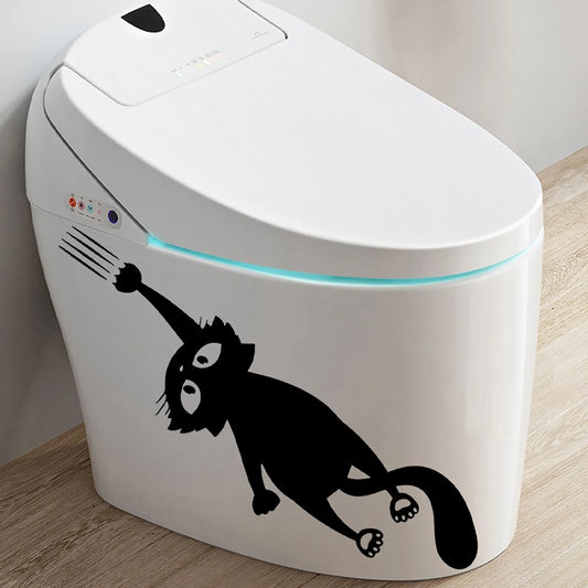Funny Black Cats Toilet Stickers DIY Stickers PVC Decorative Cartoon wall Stickers Home WC Decoration Stickers Art Decals