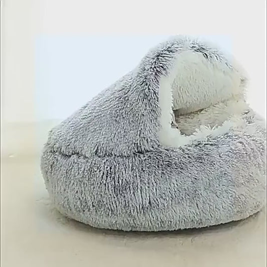 Cozy Haven: 2-in-1 Soft Plush Pet Bed with Round Cover – Warm Sleeping Nest and Cave for Small Dogs and Cats