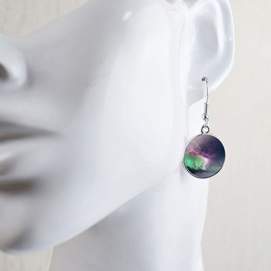 Unique Aurora Borealis Hook Earrings - Northern Lights Jewelry - Glass Cabochon Drop Earrings - Perfect Aurora Lovers Gift 25