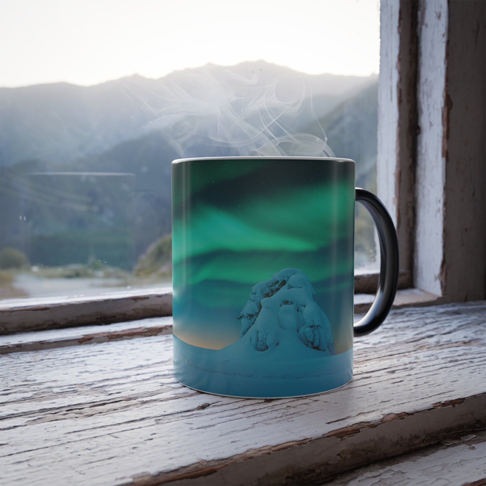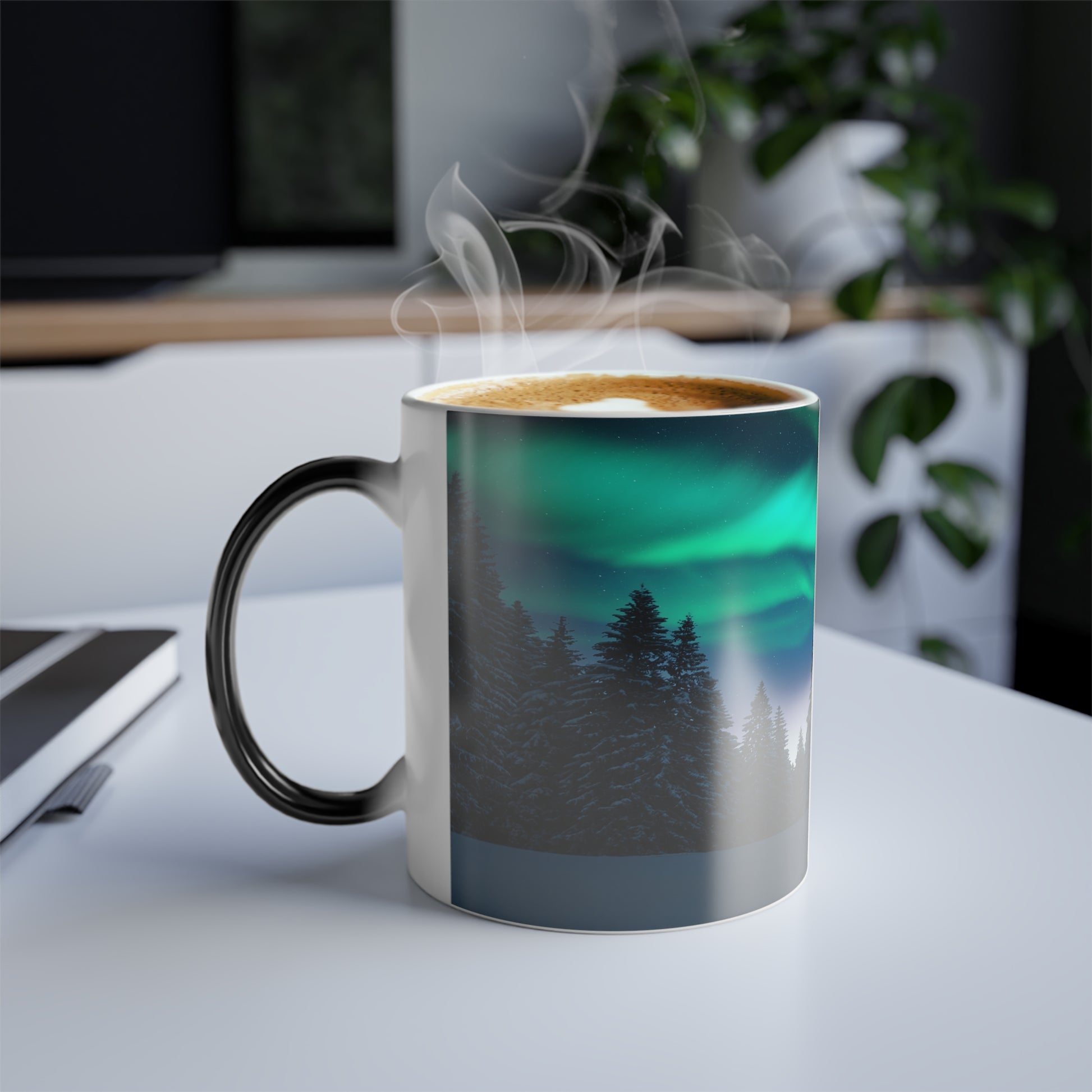 - Immerse yourself in the mesmerizing beauty of the Enchanting Aurora Borealis Heat Sensitive Mug!